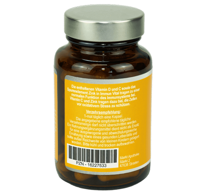 IMMUN VITAL ist eine sorgfältig komponierte Mikronährstoffkombination mit Vitamin C, Zink und Vitamin D in vegetarischer Kapselform, entwickelt im Herzen des Niederrheins. Die Rezeptur kommt ohne Gelatine, ohne Konservierungsstoffe und ohne Zuckerzusatz aus – ideal für alle, die Wert auf hochwertige Inhaltsstoffe und transparente Qualität legen.