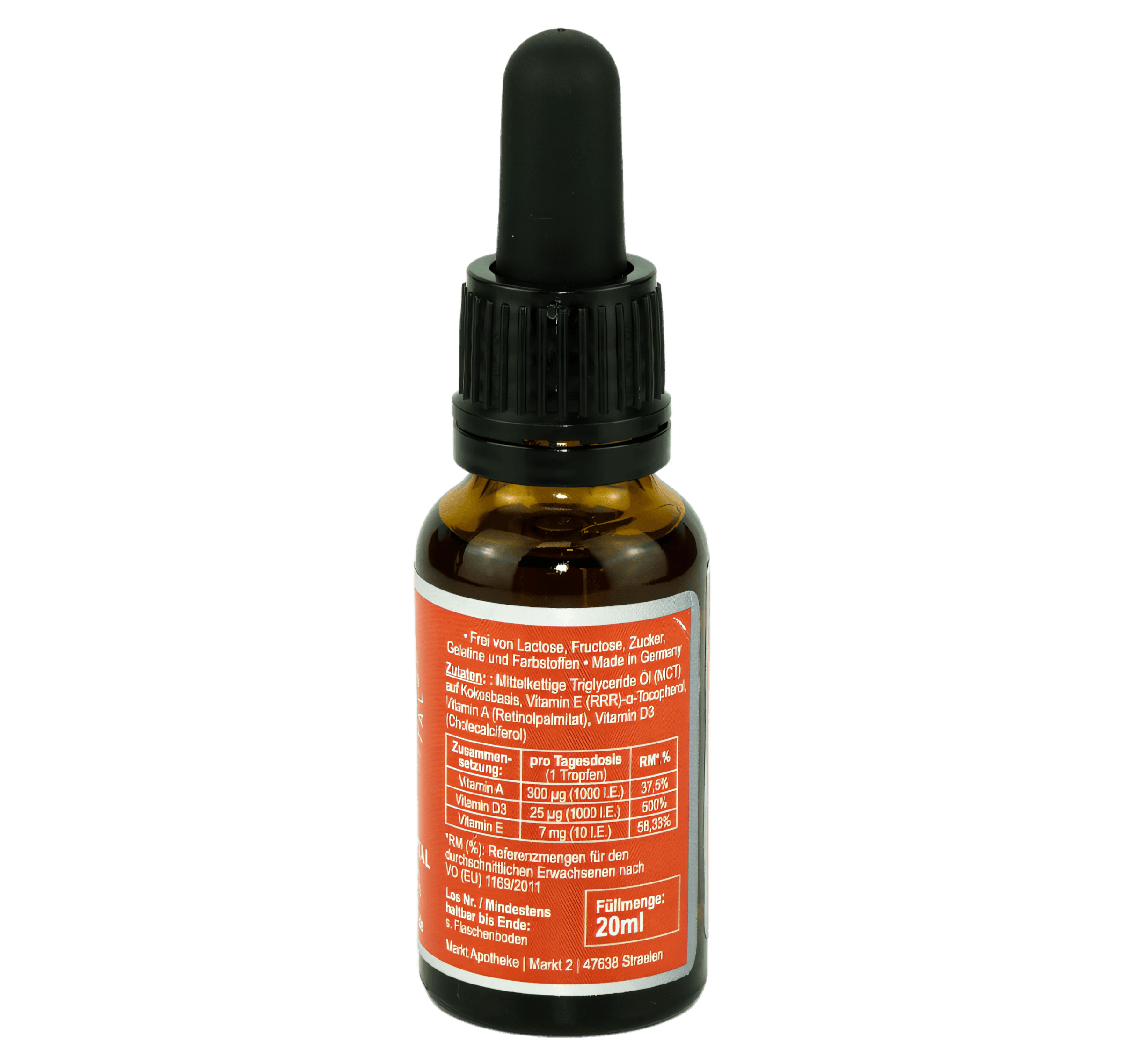 Mittelkettige Triglyceride Öl (MCT) auf Kokosbasis, Vitamin A (Retinolpalmitat), Vitamin E ((RRR)-alpha-Tocopherol)
